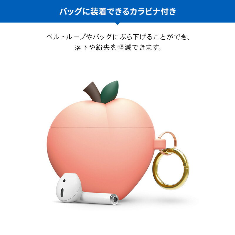 商品紹介 お取り寄せ AirPods ケース カラビナ 付 ファッション シリコン カバー 韓国 テイスト アクセサリ 落下防止 保護 アクセサリー 充電対応 AirPods1 第1世代 AirPods2 第2世代 Wireless Charging Case エアーポッズ 対応 elago PEACH HANG 【製品仕様】 ◆ 機種 : AirPods 1 第1世代 / AirPods2 with Charging Case 第2世代 / AirPods 2 with Wireless Charging Case ◆ 型番 : MMEF2J/A, MRXJ2J/A, MV7N2J/A, MR8U2J/A ◆ 内容物 : 下部ケース(ボディ部分) × 1個、上部ケース(フリップ部分) × 1個、カラビナ ◆ サイズ : 約 7.8cm × 7.7cm × 2.8cm ◆ 重量 : 約 50g ◆ 素材 : シリコン、アルミニウム 【製品特徴】 ◆ Qi充電 ( ワイヤレス充電 ) : 非対応 ◆ 充電用LEDライト : 見えない ◆ カラビナ : あり ◆ 充電口 : オープンカット ◆ ペアリングボタン位置 : 表示なし 【かわいいシリコンケース】 ピーチをモチーフにした、おしゃれでかわいいデザインケースです。